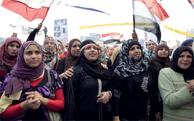 متظاهرات في ميدان التحرير ضد «العسكري». إي.بي.أيه