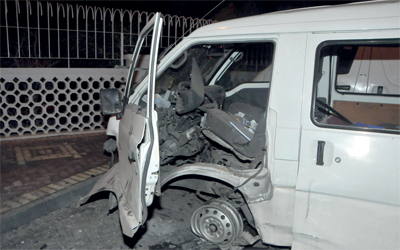الحافلة التي حدث فيها الانفجار قرب السفارة البريطانية بالمنامة. إي.بي.إيه