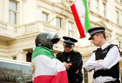 محتج إيراني أمام السفارة الإيرانية في لندن. أ ف ب