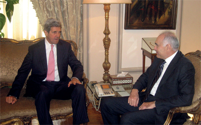 كيري خلال اجتماعه مع وزير الخارجية المصري محــــــــــــــــــــــــــــــــــــــمد عــمرو كامل. إي.بي.إيه