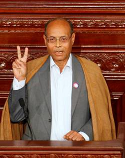 الرئيس التونسي منصف المرزوقي بعد حلف اليمين في الجمعية التأسيسية في 13 ديسمبر 2011 - رويترز