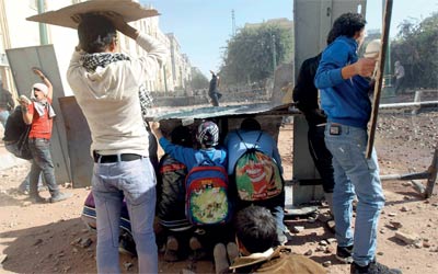 محتجون مصريون يتحصنون ضد الشرطة العسكرية. أ.ف.ب
