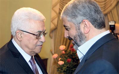 عباس ومشعل على هامش اجتماع القاهرة. أ.ف.ب