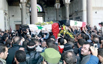 سوريون يشيعون ضحايا الهجومين الانتحاريين من المسجد الأموي فــــــــــــــــــــــــــــــــــــي دمشق. إي.بي.إيه