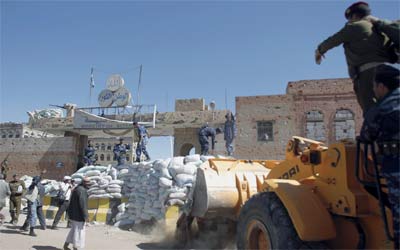 الجيش يزيل حاجزاً من أمام وزارة الداخلية في صنعاء. رويترز