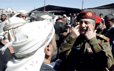 اجتاحت موجة الاحتجاجات التي باتت تعرف بثورة المؤسسات، صباح أمس، معسكرات شرطة النجدة في صنعاء للمطالبة بإقالة قائد شرطة النجدة، وكيل وزارة الداخلية، اللواء محمد عبدالله القوسي، فيما أبدى قيادي بالمعارضة اليمنية «اللقاء المشترك» مخاوفه من أن يسيطر تنظيم القاعدة على اليمن من خلال الجناح الأمني والعسكري لحزب الإصلاح، وحذر من تكرار تجربة حركة طلبان الأفغانية في البلاد، بينما قتل ستة من أعضاء التنظيم، الليلة قبل الماضية، في قصف شنه الجيش على منزل كان يوجد فيه عناصر التنظيم في محيط مدينة زنجبار عاصمة محافظة ابين الجنوبية.