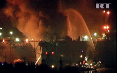 واندلع الحريق الخميس على سقالة خشبية حول الغواصة. وذكرت وزارة الحالات الطارئة في بيان، أن حجم الاشعاعات في مكان اندلاع حريق الغواصة «كاي 84 ايكاترينبورغ» في المعدل العادي و«لا يشكل أي تهديد للسكان». ووقع الحادث في روسلياكوفو، حوض بناء السفن العسكري المرتبط بمرفأ سفيرومورسك (شمال غرب) قاعدة أسطول الشمال التابع للجيش الروسي.