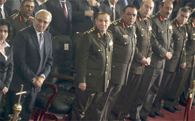 أعضاء من المجلس العسكري ومسؤولون وقياديون شهدوا القداس. رويترز