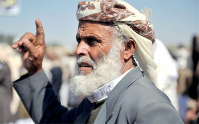 عجوز يمني خلال تظاهرة مناهضة لصالح في صنعاء. إي.بي.إيه