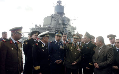 راجحة يزور حاملــــــــــــــــــــــــــــــــــة الطائرات الروسية الأميرال كوزنتسوف. رويترز