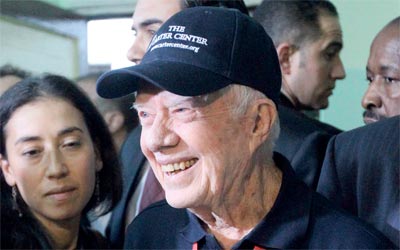 كارتر خلال مراقبته المرحلة الأخيرة من الانتخابات. أ.ف.ب