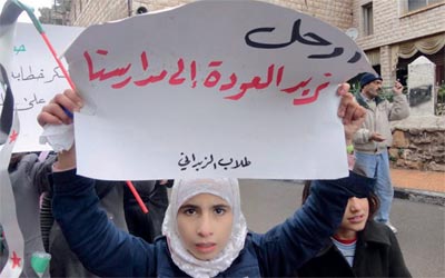 تظاهرة لطلاب الزبداني تطالب برحيل الأسد. رويترز