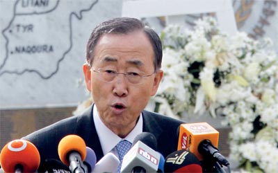 وقال نصرالله في خطاب نقل عبر شاشة كبيرة أمام تجمع شعبي ضخم في بعلبك في شرق لبنان، «نؤكد بيقين ليس بعده يقين تمسكنا بخيار المقاومة ونهج المقاومة وطريق المقاومة وسلاح المقاومة، لأن هذا الخيار، هذا الطريق، هذا السلاح، هو الضمانة الوحيدة لأمن لبنان وحمايته وكرامته وسيادته». وأضاف نصرالله الذي كان يتحدث لمناسبة ذكرى أربعينية الامام الحسين ونقل خطابه مباشرة عبر محطات التلفزة، «أنا بالامس شعرت بالسعادة عندما استمعت الى الامين العام للامم المتحدة السيد بان كي مون يقول انه قلق من القوى العسكرية الخاصة بحزب الله. هذا يطمئننا. أقول له قلقك يا حضرة الامين العام يطمئننا ويسعدنا».