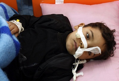 طفل يرقد في المستشفى بعد إصابته في إحدى التفجيرات الانتحارية الأخيرة في العراق. رويترز
