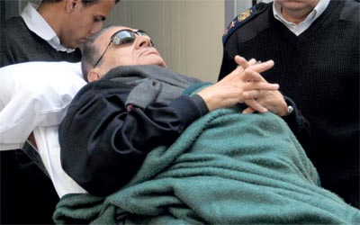 مبارك خلال إحدى جلسات المحاكمة. آي.بي.إيه ــ أرشيفية