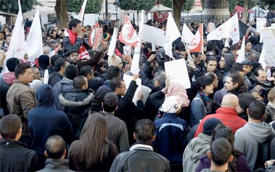ويأتي هذا التهديد، فيما شهدت مدينة الرديف، أول من أمس، إضراباً عاماً دعا إليه الاتحاد المحلي للشغل (منظمة نقابية) لمساندة 42 عاملاً من وزارة الفلاحة ينفذون منذ التاسع من الشهر الجاري إضراباً عن الطعام للمطالبة بتسوية أوضاعهم المهنية. وقد شل هذا الإضراب المدينة، حيث توقف نشاط جميع المؤسسات التربوية والمرافق الإدارية والمالية والخدماتية، وكذلك فروع شركة فوسفات قفصة التي توقف نشاطها بالكامل، فيما أغلقت المحال التجارية أبوابها.