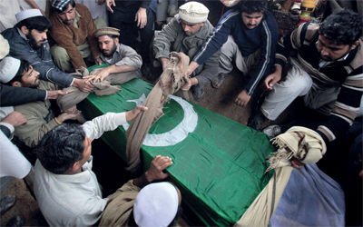 خلال تشييع أحد الجنود في إقليم خورم. رويترز