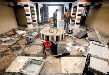 أجهزة كمبيوتر مدمّرة في سفارة سورية بالقاهرة. رويترز