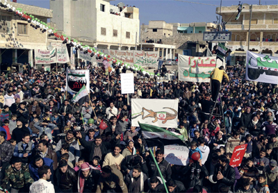 تظاهرة احتجاجية ضد الأسد في بلدة بنش بالقرب من إدلب. رويترز
