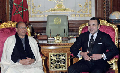 المرزوقي خلال اجتماعه مع العاهل المغربي. رويترز