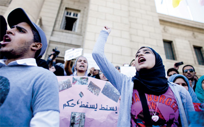 تظاهرة لطلاب جامعة القاهرة تطالب «العسكر» بتسليم السلطة. غيتي