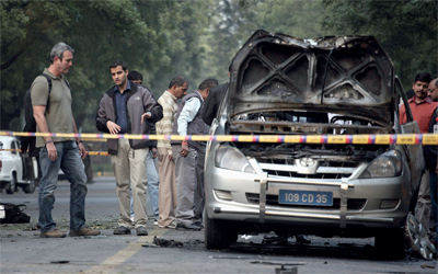 السيارة التي انفجرت أمام السفارة الإسرائيلية في نيودلهي. رويترز