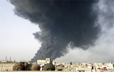 الدخان يتصاعد من أنبوب النفط المحترق. رويترز