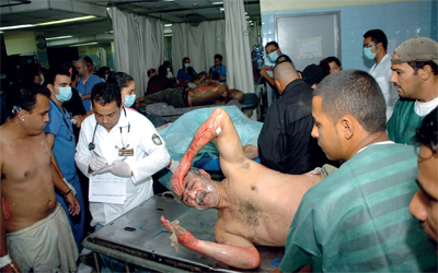 مصابون بالحريق أثناء نقلهم للعلاج. رويترز