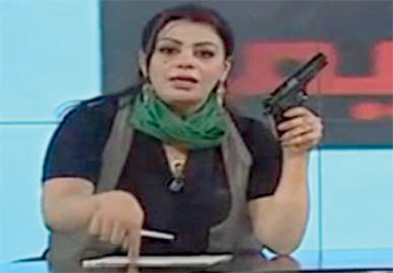 هالة المصراتي اشتهرت بحمل مسدسها أمام الكاميرا. أرشيفية