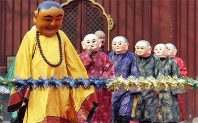 راهب يقود الاحتفالات في السنة التيبيتية الجديدة التي تبدأ اليوم وهو تقليد يجري الاحتفال به سنوياً.