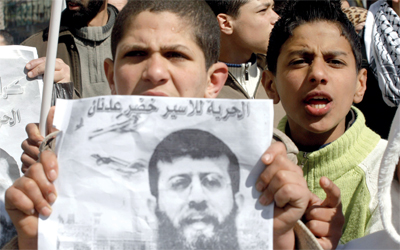 تظاهرة في غزة تطالب بالإفراج عن عدنان. رويترز