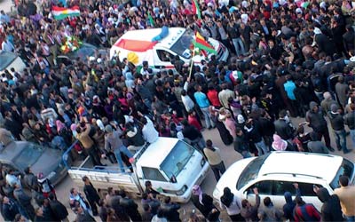 معارضو الأسد خلال تشييع المعارض الكردي نصر الدين برحاك في القامشلي. رويترز