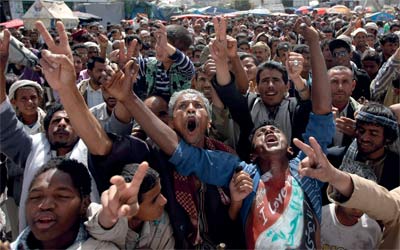 تظاهرة للمعارضة في صنعاء غداة الانتخابات. أ.ف.ب