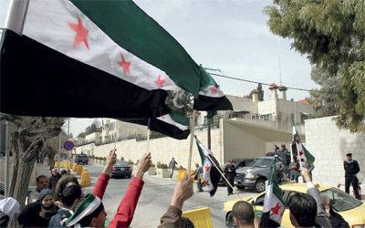تظاهرة ضد الأسد أمام السفارة السورية في عمان. رويترز