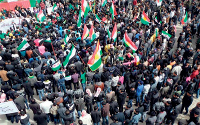 تظاهرة حاشدة في الحسكة تطالب بإسقاط الأسد. إي.بي.إيه