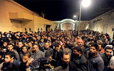 آلاف المسيحيين تدافعوا نحو مقر البابوية بالعباسية بعد سماع خبر وفاة البابا. إيه.بي.إي