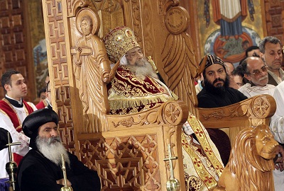 جثمان البابا شنودة الثالث أثناء مراسم وداعه - رويترز