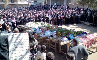 أهالي مدينة القصير في ريف حمص يشيعون 9 قتلى سقطوا بنيران قوات الأسد. رويترز