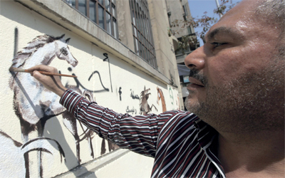 مصري يرسم على جدارية في شارع محمد محمود وسط القاهرة. رويترز