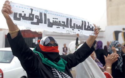 تظاهرة في سبها تطالب بوجود الجيش الوطني. رويترز