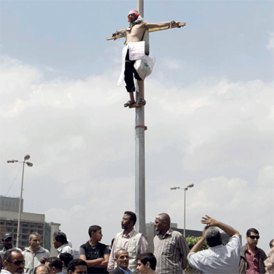 مصري صلب نفسه اعتراضاً على «اضطهاد» الحكومة له. رويترز