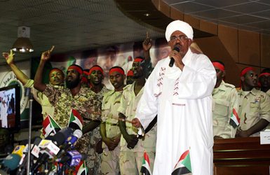 ولوح البشير الذي ارتدى زياً عسكرياً، بعصاه أمام حشد كبير في ولاية شمال كرفان الحدودية، ووجه تهديدات لزعامة الجنوب الذي انفصل العام الماضي عن السودان، بعد عقود من الحرب الأهلية.