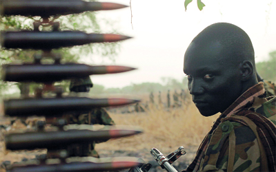 جندي جنوبي في ولاية الوحدة الحدودية التي تشهد توترات. رويترز