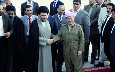 بحث زعيم التيار الصدري مقتدى الصدر، في إقليم كردستان العراق، مسألة عدم التجديد لولاية ثالثة لرئيس الوزراء نوري المالكي، وأكد في الوقت ذاته معارضته اسقاط الحكومة الحالية. وقال الأمين العام لكتلة الأحرار التابعة للتيار الصدري ضياء الأسدي، أمس، إن الصدر بحث عدم التجديد للمالكي. وأضاف أنه تم بحث هذه المسألة «باعتبار أن رئيس الوزراء هو من دعا الى ذلك، وهو من دعا رئاسة الوزراء الى إصدار قانون يصب في هذا الاتجاه». ووصلت العلاقات بين المالكي ورئيس إقليم كردستان مسعود بارزاني إلى مستوى شديد التوتر.