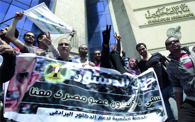 أنصار البرادعي أمام مقر نقابة الصحافيين بعد إطلاقه حزب الدستور. رويترز