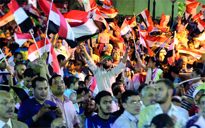 أنصار المرشح الرئاسي محمد مرسي خلال تجمع في القاهرة. إي.بي.أيه