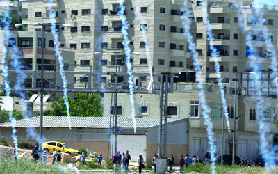 الاحتلال يمطر بغاز الدموع مسيرة فلسطينية لدعم الأسرى خارج سجن عوفر. أ.ف.ب