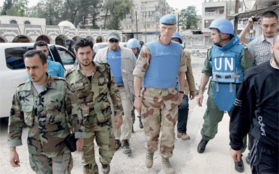 وأضاف سينغ أن المراقبين توجهوا، أمس، في جولة جديدة الى مدينة دوما ومحيطها قرب العاصمة دمشق، في الوقت الذي تتابع فرقنا في المحافظات عملها وقد ازداد عددهم في محافظة حمص بحيث أصبحوا 11 مراقبا ولدينا أربعة مراقبين في كل من درعا وحماة وادلب. وأعرب عن تعازيه لأسر الضحايا الذين سقطوا في التفجيرين اللذين وقعا في حي القزاز بدمشق أول من أمس، مشدداً على ضرورة وقف العنف وأن استمرار العنف لن يحل المشكلة بل سيزيدها تعقيداً.
