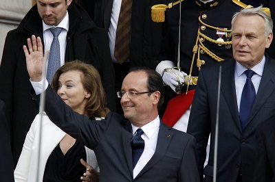 وأصبح هولاند، اليوم، رسمياً رئيساً للجمهورية الفرنسية بمراسم جرت في قصر الإليزيه تسلم خلالها مهام الرئاسة من نيكولا ساركوزي، وعين النائب وكلف مدينة نانت جان مارك ايرو في تشكيل الحكومة الجديدة.