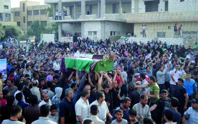 صورة بثتها شبكة «شام» لتشييع الطفلتين مريم وغنى الرشيد اللتين قتلهما الأمن السوري في درعا. أ.ف.ب